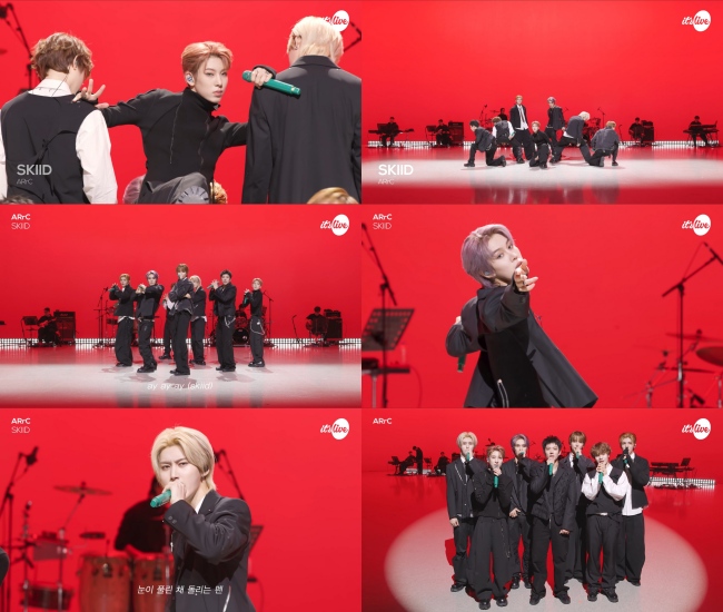 아크(앤디, 최한, 도하, 현민, 지빈, 끼엔, 리오토)는 지난 7일 유튜브 채널 'it's Live(잇츠라이브)'에 출연해 싱글 2집 'CTRL+ALT+SKIID(컨트롤+알트+스키드)'의 타이틀곡 'SKIID(스키드)' 무대를 꾸몄다.