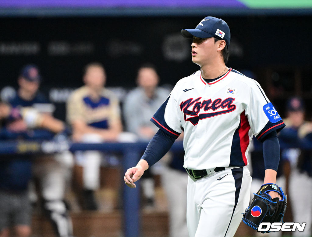 6회초 2사 2루에서 체코에게 땅볼을 유도하며 이닝을 끝낸 한국 이호성이 더그아웃으로 향하고 있다. 2025.11.08 /cej@osen.co.kr