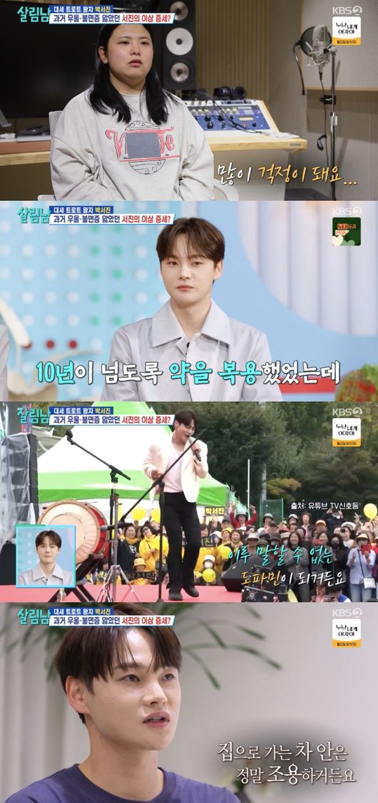 이날 가을을 타는 박서진에 동생 박효정은 “오빠가 원래 우울증도 있고 불면증도 있는 편인데 가을만 되면 그게 심해진다. 허공 바라보고 혼자 또 무기력해지고 이런 부분이 심해져서 걱정이 되긴 하다”라고 걱정을 드러냈다.