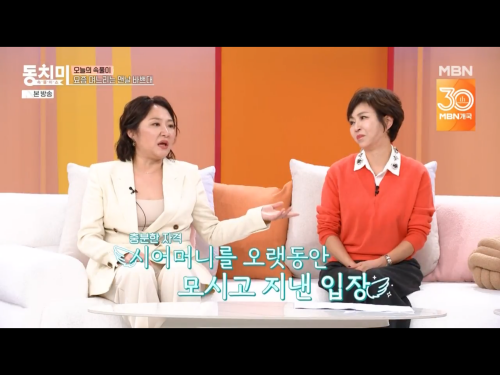 8일 방송된 MBN 예능 ‘속풀이쇼 동치미(약칭 동치미)’에서는 세대별 며느리들이 모여 솔직한 고부 에피소드를 나눴다. 이날 방송에는 가수 노사연·노사봉 자매, 배우 김용림, 배우 박준규 아내 진송아, 방송인 정미녀 등이 출연해 ‘바쁜 며느리, 내가 모신다고 느끼는 순간 BEST5’를 주제로 이야기를 전했다.