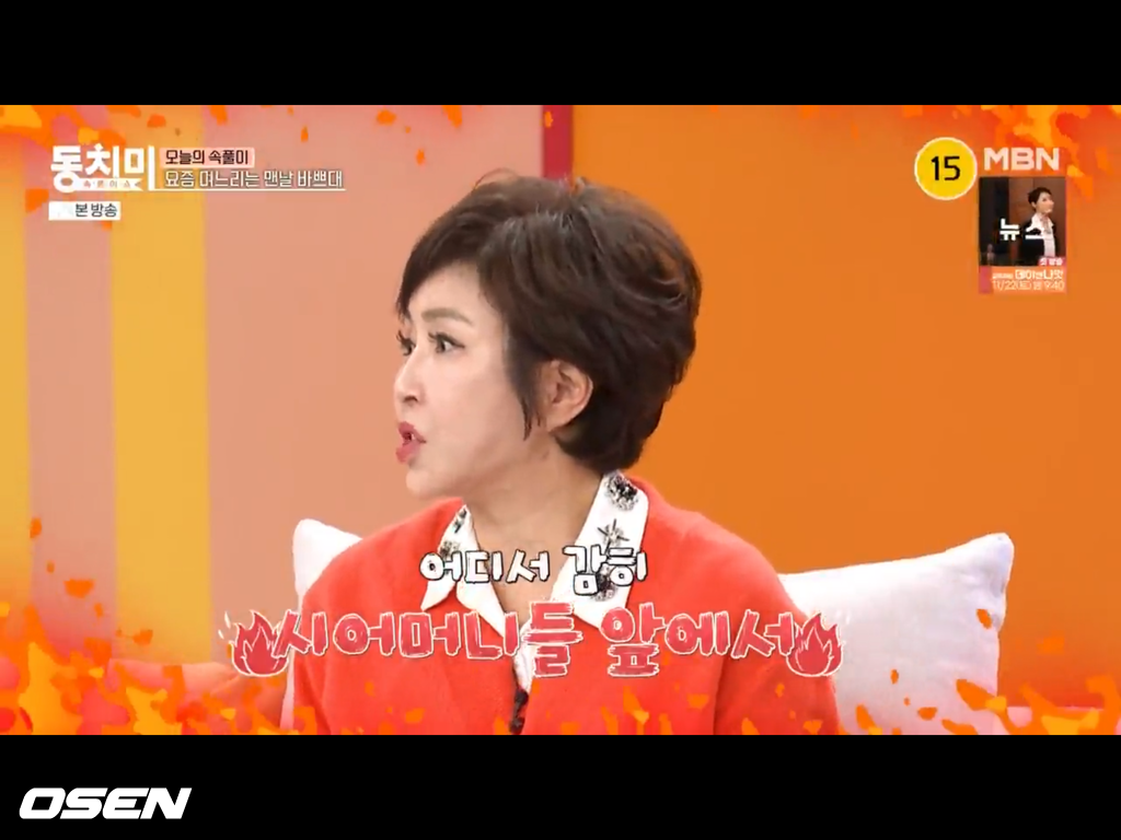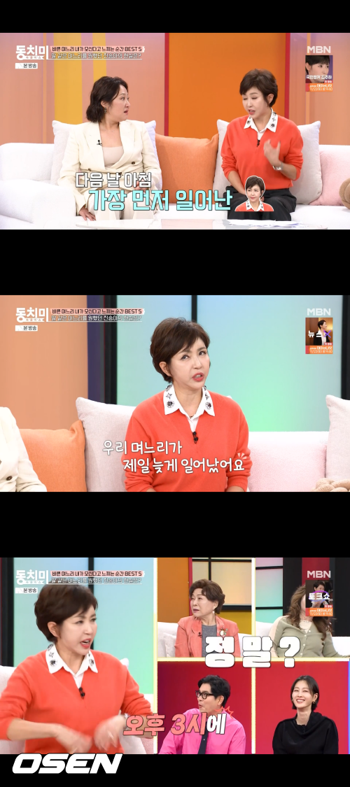 지난 8일 방송된 MBN 예능 ‘속풀이쇼 동치미(이하 동치미)’에서는 세대별 며느리들이 모여 솔직한 고부 에피소드를 나눴다. 이날 방송에는 가수 노사연·노사봉 자매, 배우 김용림, 배우 박준규 아내 진송아, 방송인 정미녀 등이 출연해 ‘바쁜 며느리, 내가 모신다고 느끼는 순간 BEST5’를 주제로 이야기를 전했다.