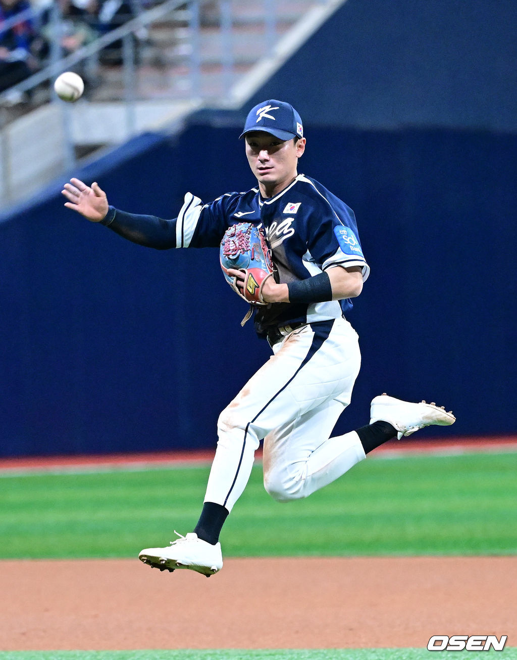 1회말 1사 1사 주자없는 상황 체코 에스칼라의 땅볼 타구를 잡은 한국 2루수 신민재가 1루로 송구하고 있다. 2025.11.09 / dreamer@osen.co.kr