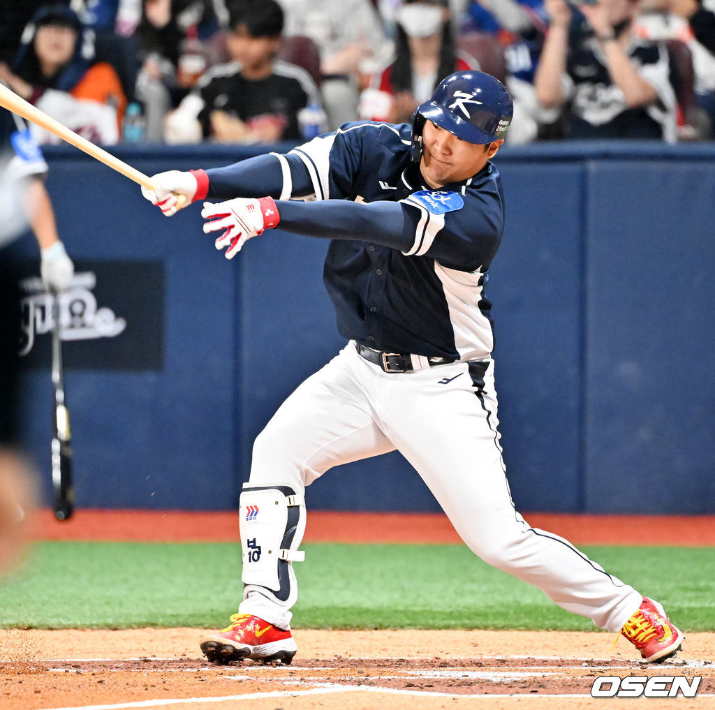 3회초 1사 1, 3루 상황 한국 문보경이 1루수 앞 땅볼을 때리며 선취 타점을 올리고 있다. 2025.11.09 / rumi@osen.co.kr