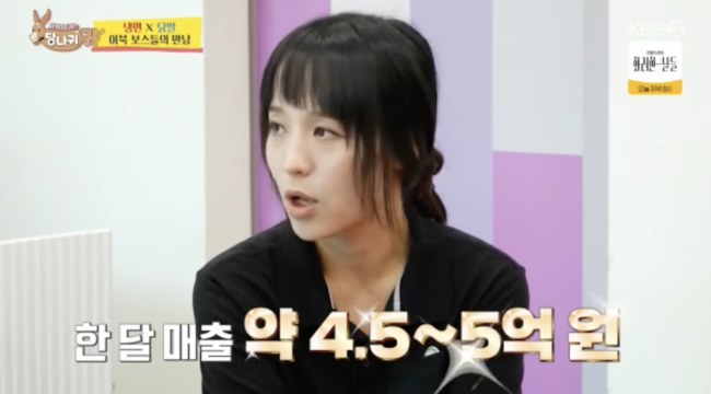 김량진은 “한 달 매출은 4억 5천에서 5억 정도”라며 “북에서도 안 다쳤는데 닭발 하면서 손목 나갔다”며 엄청난 양의 닭발 판매로 손목 부상까지 당했다고 밝혀 이순실의 부러움을 샀다.
