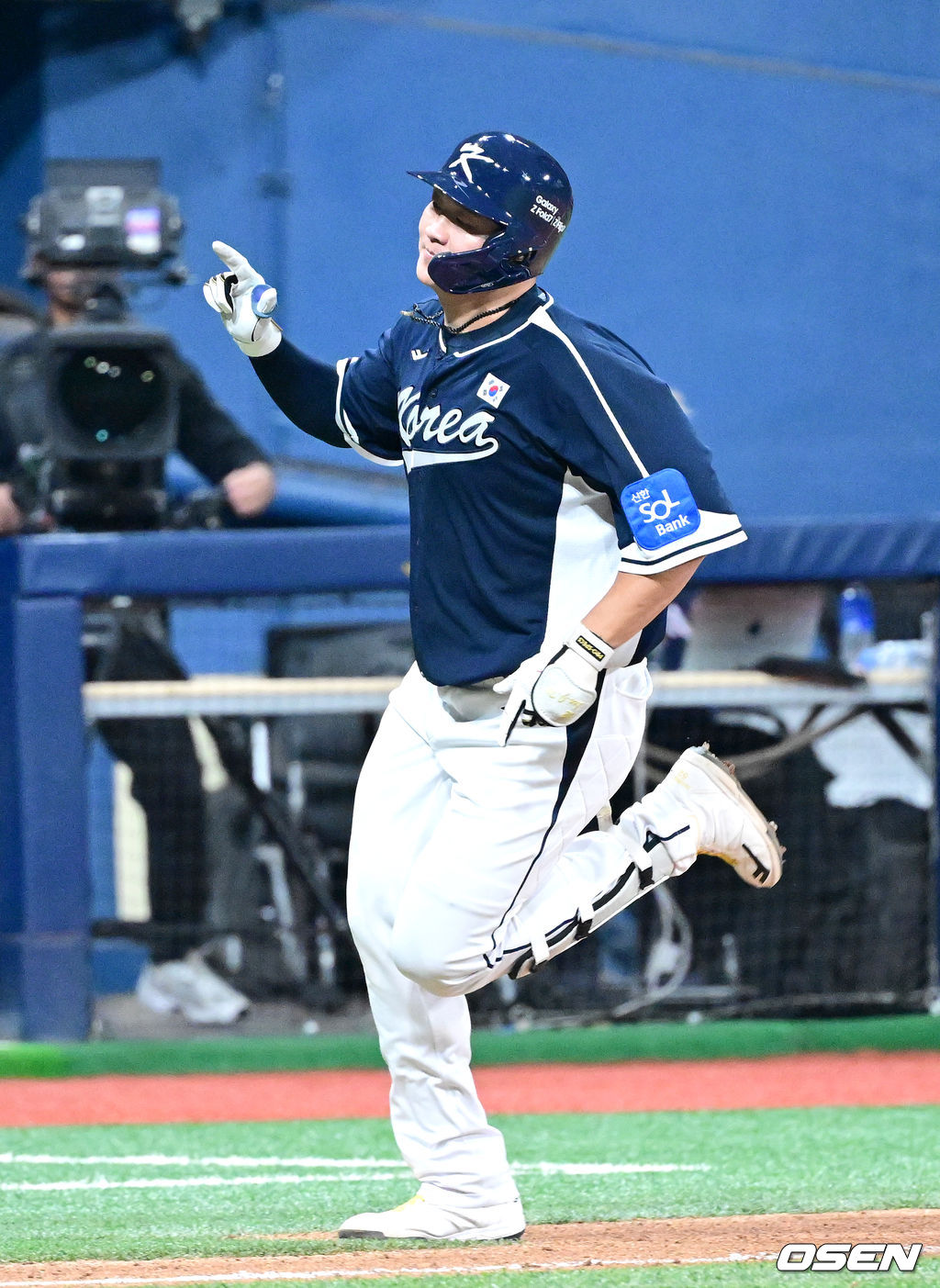 9회초 무사 1루 상황 한국 이재원이 달아나는 중월 투런포를 날리고 그라운드를 돌며 기뻐하고 있다. 2025.11.09 / dreamer@osen.co.kr