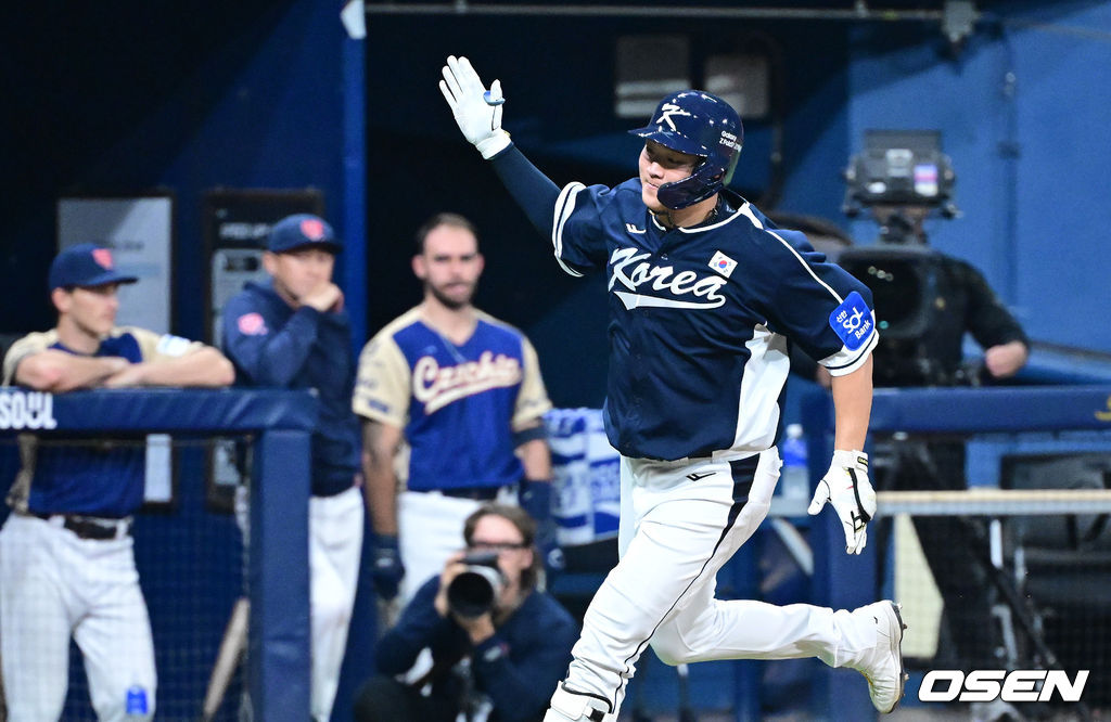9회초 무사 1루 상황 한국 이재원이 달아나는 중월 투런포를 날리고 그라운드를 돌며 기뻐하고 있다. 2025.11.09 / dreamer@osen.co.kr