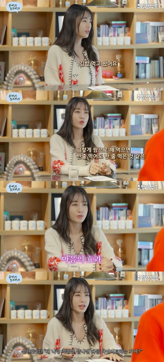 이어 "김밥 반줄을 쌈에다 싸 먹는다. 그렇게 쌈으로 해 먹으면 반줄 먹어도 한 줄 먹은 것 같은 마음의 효과가 있다"고 덧붙여 눈길을 끌었다.