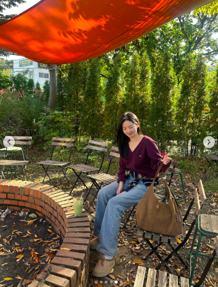 공개된 사진 속 류이서는 청바지에 자주빛 컬러의 니트를 입고 따뜻한 분위기의 가을룩을 선보였다. 식당에 앉아 카메라를 응시한 그는 턱을 괸 포즈를 취하며 청순한 분위기를 자아내고 있다.