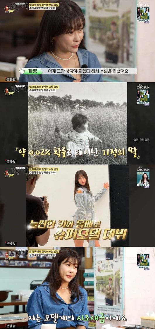 당시 0.02%의 확률을 뚫고 태어난 기적의 딸이었던 것. 출생부터 특별했던 현영은 늘씬한 키와 모델로 슈퍼모델 데뷔해 남다른 예능감으로 MC와 가수, 배우까지 영역을 넓히며 ‘만능 엔터테이너’로 활동하고 있다.