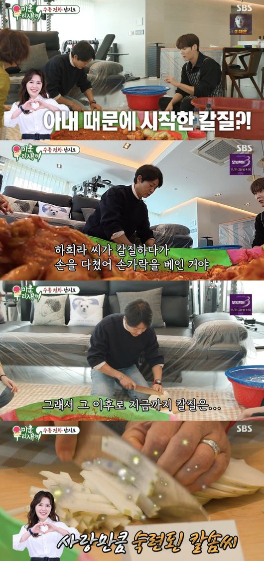 최진혁은 “형수님이 손가락 다치셔서 칼질 시작했다고?”라고 물었다. 최수종은 “하희라 씨가 칼질하다가 손을 다쳤다. 손가락 베인 거다. 그래서 그 이후부터 지금까지 칼질은 다 내가 한다. 무조건 내가 한다. 음식할 때”라며 사랑꾼 면모를 보여 감탄을 자아냈다.