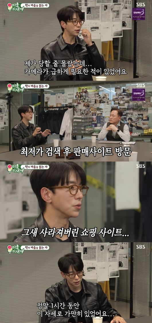표창원에 여러 범죄 이야기를 듣던 중 윤현민은 과거 본인이 사기 당한 사연을 밝혀 눈길을 끌었다. 그는 “제가 당할 줄 몰랐는데 카메라가 급하게 필요한 적이 있었다. 최저가를 찾아서 그 사이트 들어갔다”라고 말했다.