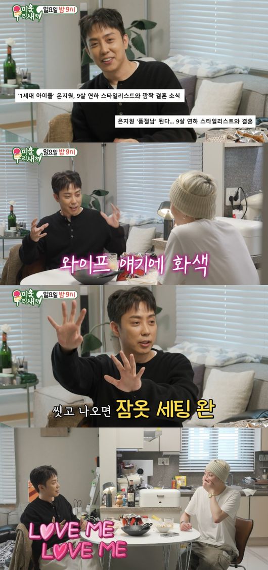 최근 결혼한 은지원은 “훨씬 좋다”라며 “씻고 나오면 잠옷 셋팅 되어 있고, 뭔가 자기가 해서 나한테 해주려고 하는 게 너무 예쁘다”라고 미소를 숨기지 못했다. 이내 그는 “너무 아내 자랑인가?”라고 너스레를 떨기도.