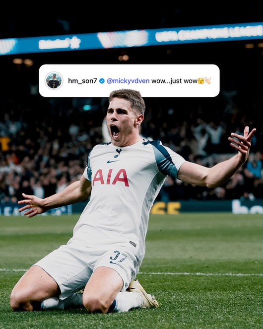 토트넘 팬 커뮤니티 '스퍼스 웹'은 9일(이하 한국시간) "토트넘 수비수 반 더 벤이 푸스카스급 득점을 넣은 뒤 전 주장 손흥민에게 받은 문자를 공개했다. 그는 유럽축구연맹(UEFA) 챔피언스리그(UCL)에서 푸스카스상을 받았던 손흥민의 아이콘 같은 골을 따라 했다"라고 보도했다.