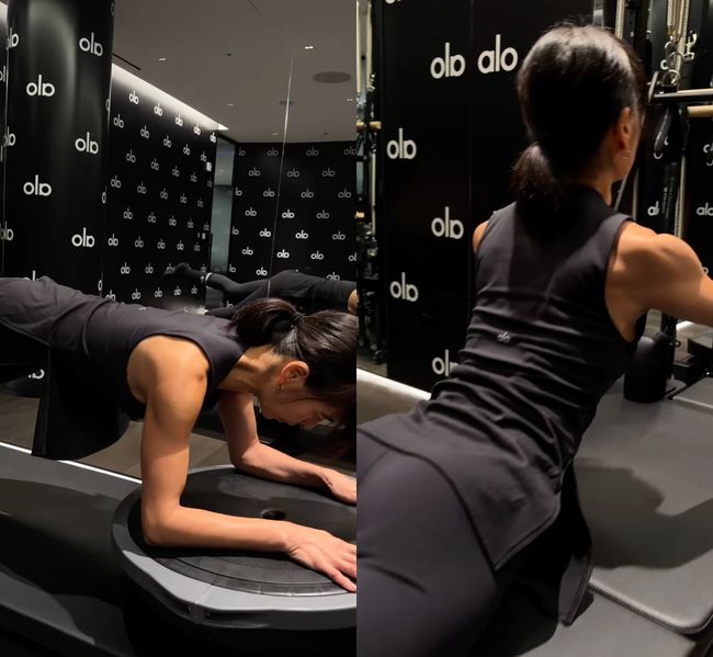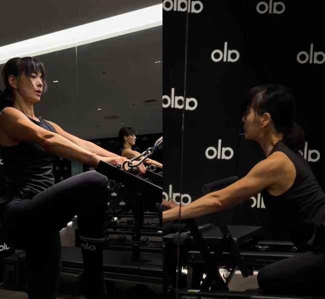 공개된 사진 속에는 정혜영이 운동 기구를 사용해 웨이트 트레이닝을 하고 있는 모습이 담겨 있다.