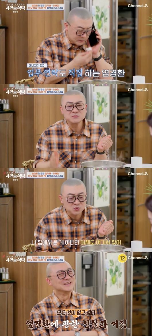 10일 방송된 채널A ‘절친 토큐멘터리-4인용식탁’(이하 4인용식탁)에는 염경환이 출연해 절친 이혜정, 김지혜를 초대했다.