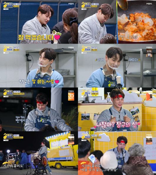 MBN ‘웰컴 투 찐이네’는 ‘현역가왕2’를 통해 전 국민에게 사랑받은 우승자 박서진과 준우승자 진해성이 지금껏 받은 사랑에 보답하기 위해 푸드트럭 주인장으로 나서는 푸드 힐링 버라이어티다. 지난 10일 방송된 4회에서는 사장 박서진, 진해성이 셰프 파브리와 아르바이트생 마이진, 전유진과 함께 저녁 장사를 이어가는 모습이 그려졌다.