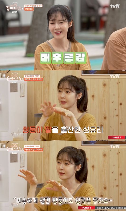 성유리는 지난 11일 오후에 방송된 케이블채널 tvN ‘끝까지 간다’에서 쌍둥이 딸의 외모에 대해 언급해 눈길을 끌었다.