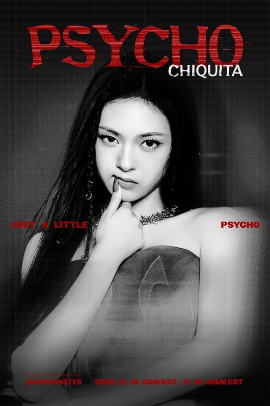 베이비몬스터의 'PSYCHO' 뮤직비디오는 오는 19일 0시 공개된다. 이 곡은 '사이코'라는 단어를 색다른 시각으로 해석한 가사, 중독성 있는 후렴구, 베이비몬스터만의 힙합 스웨그로 이미 뜨거운 호응을 얻고 있어 이번 뮤직비디오에 펼쳐질 스토리와 퍼포먼스에도 기대가 모아진다.