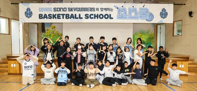 소노는 지난 11일 고양시 덕양구에 있는 신능초등학교에 선수단이 방문해 3~6학년 학생 100여 명을 대상으로 농구를 가르치고, 다양한 레크레이션으로 소통하는 '소스쿨(소노 스카이거너스 농구 스쿨)' 프로그램을 진행했다.
