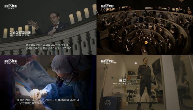 그가 해부 실습을 할 때면 강의실 가장 위층에서는 영혼을 달래줄 음악을 연주하고, 시신 냄새가 덜한 저층부터 귀족과 학생 순으로 사람을 채웠다. 이들은 마치 공연을 보듯 인체 해부학 강의를 들었다고 전해진다. 내레이터 한효주는 이러한 역사적 사실과 함께 "인류는 언제부터 인간의 몸이 기계로 대체될 수 있다는 생각을 했을까?"라는 질문을 던져 호기심을 유발한다.