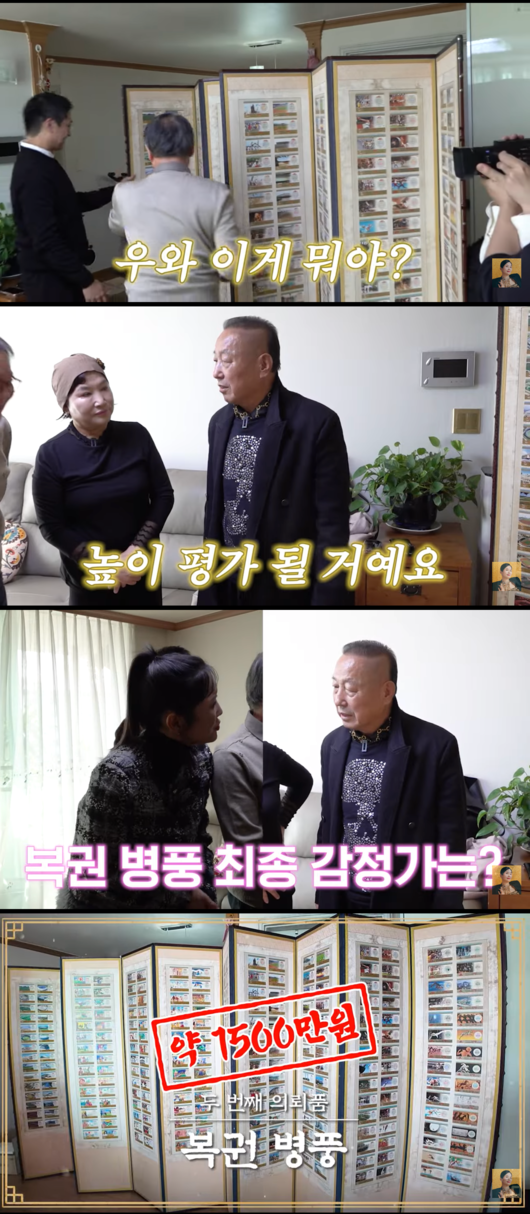 그것은 바로 88 서울 올림픽 기금 마련을 위해 발행된 복권을 전 회차 빠짐없이 구입하여 병풍 형태로 만든 것이었다. 시아버지의 남다른 소장품에 전문가는 진지하게 감정을 시작했다.