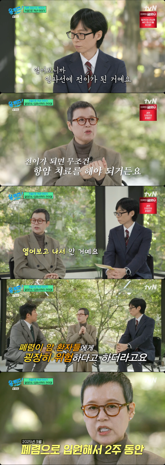 '유 퀴즈 온 더 블럭’ 개그우먼 박미선이 유방암 진단부터 임파선 전이, 생명을 위협했던 폐렴 위기까지 길고 고통스러웠던 투병 과정을 솔직하게 털어놨다.