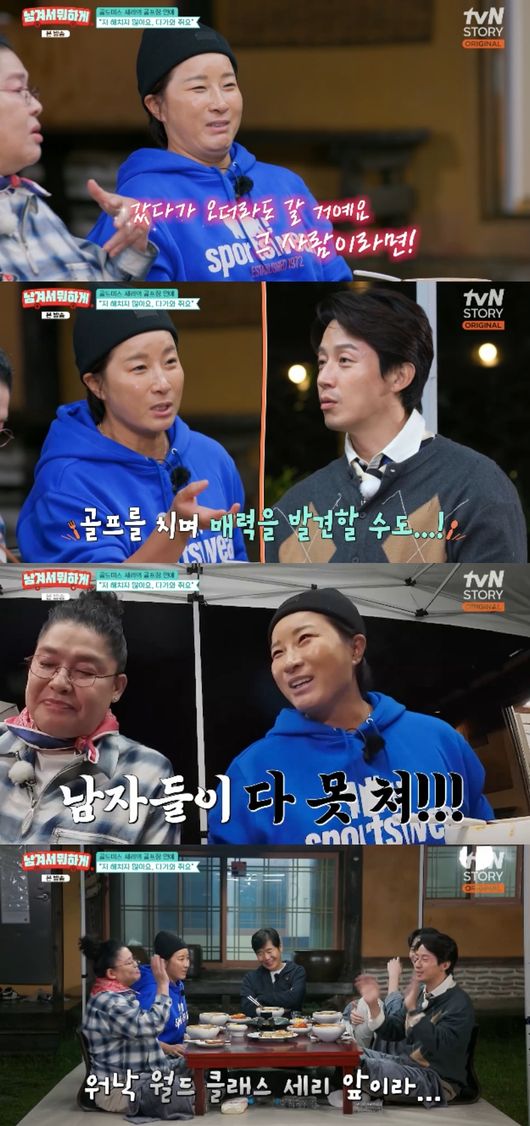 특히 박세리는 “나는 그 생각도 해봤다. 내가 마음에 드는 사람이랑 골프를 한 번 쳐봐야겠다. 골프 좋아하고 매력이 있으니까 치면 혹시 아냐, 호감형일 수 있으니까. 그렇게 한다고 갔는데 남자들이 다 못 친다. 정신을 못 차려”라고 토로했다.