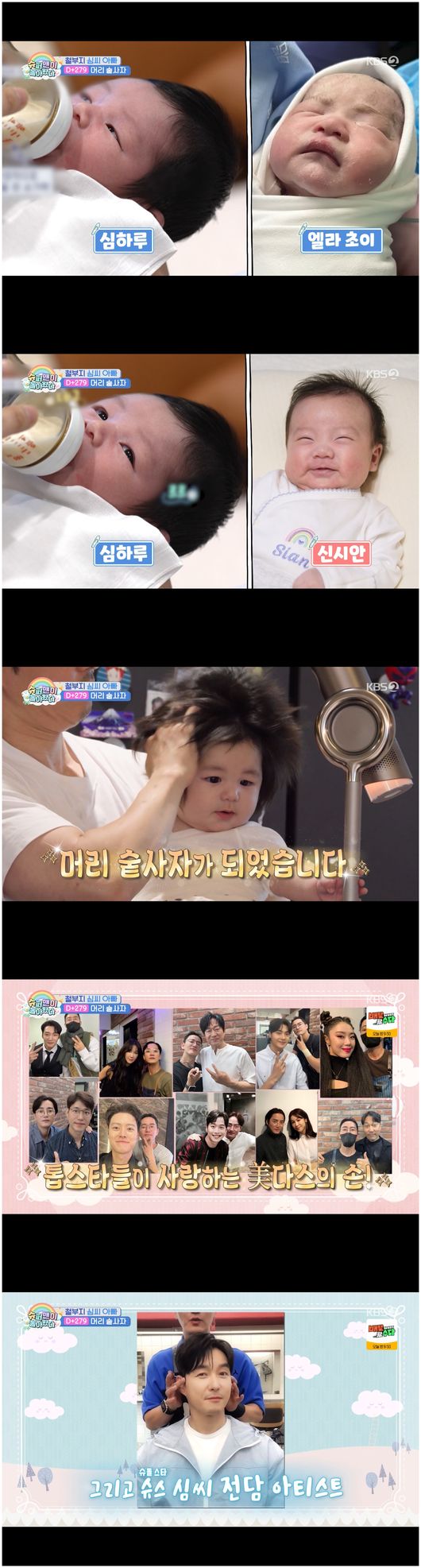 이순철 디렉터의 지시에 따라 심형탁은 하루를 안은 채 이발을 시작했다. 이순철 헤어 디렉터는 “보통 의자에 앉혀서 아기 머리를 잘라주지만, 신생아는 목을 가눌 힘이 없다. 그래서 엄마랑 아빠도 가운을 입고 같이 안고서 머리를 자르는 거다”라며 설명했다.