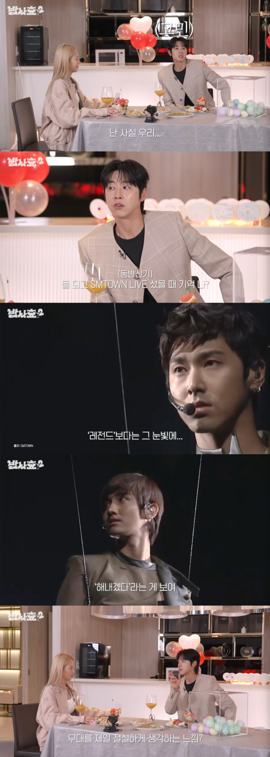 윤호는 “난 사실 우리 둘 되고 SM타운 섰을 때 기억나? 그때를 제일 많이 봤다. 레전드 보다는, 그 눈빛에 ‘해내겠다’가 보인다. 모든 걸 다 떠나서 그 무대를 제일 절실하게 생각하는 느낌이다. 왠지 그걸 보면 울컥한다”고 설명했다.