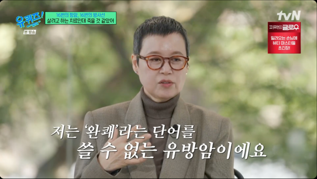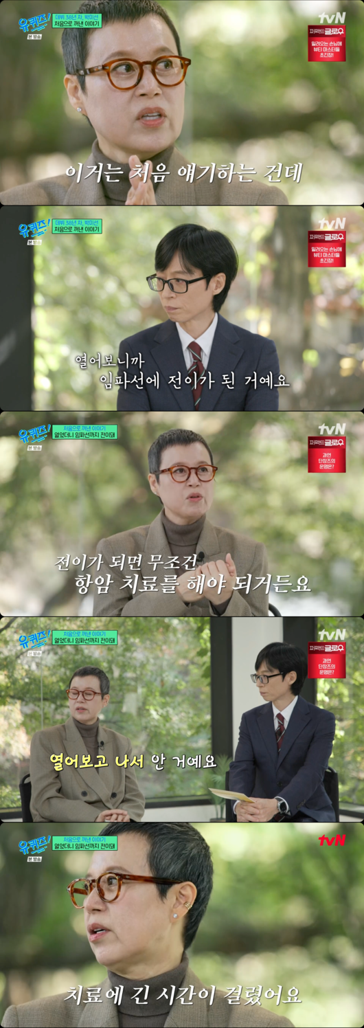 '유 퀴즈 온 더 블럭’ 개그우먼 박미선이 임파선 전이를 방송 최초로 공개했다.