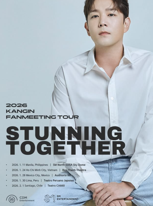 공지에는 "오랫동안 기다린 끝에 드디어 왔다"며 "강인이 내년에 첫 단독 팬미팅 투어를 떠난다"며 "'2026 KANGIN FANMEETING TOUR: STUNNING TOGETHER'에서 강인과 함께 아름다운 시간을 보내세요"라는 문구와 함께 투어 포스터가 담겼다.