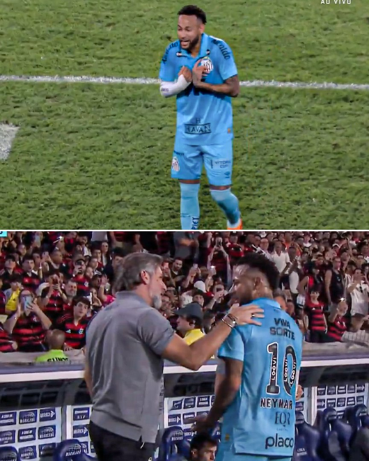 하지만 페리스는 네이마르의 지시를 듣지 않고, 전방으로 길게 롱패스를 시도했다. 플라멩구는 다시 한번 공을 쉽게 가로챘다. 이를 본 네이마르는 두 팔을 들어 올리며 분노했고, 잠시 발걸음을 멈춘 뒤 절레절레 고개를 저었다.