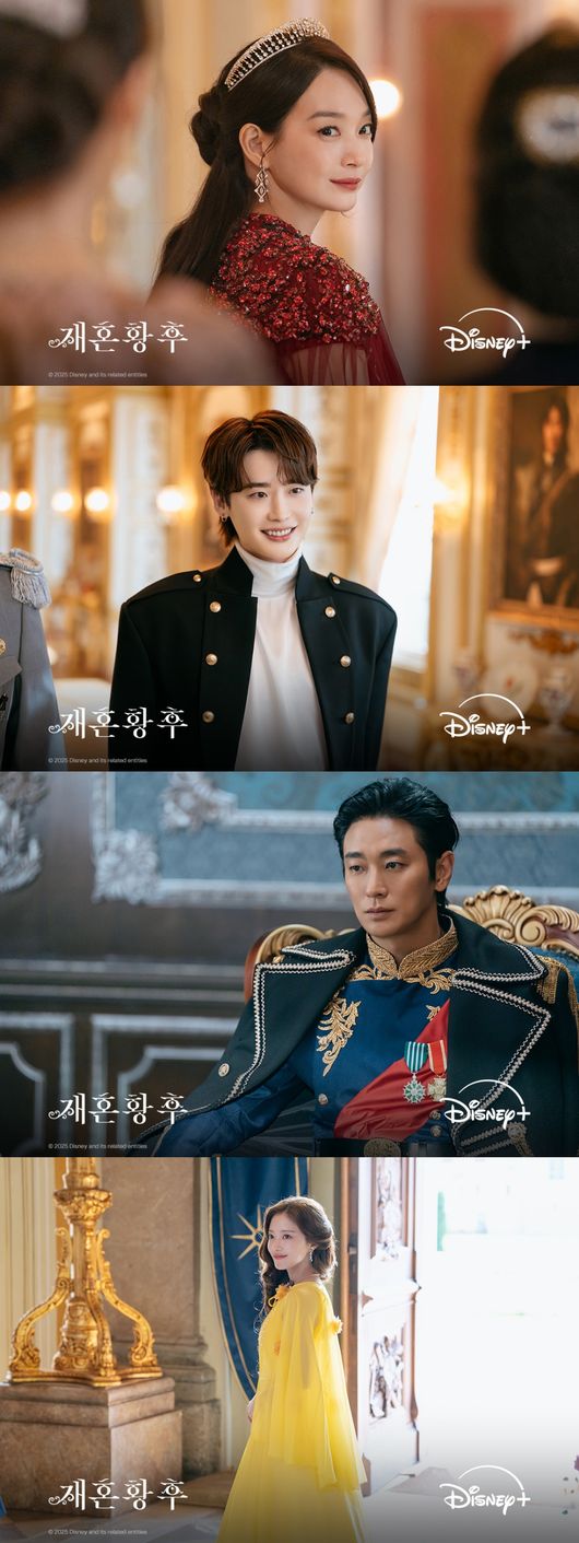 13일 디즈니+는 신규 오리지널 시리즈 '재혼황후' 스틸 컷을 최초 공개했다. 사진들에는 극 중 주연으로 활약하는 신민아, 이종석, 주지훈, 이세영의 모습이 담겨 이목을 끌었다.