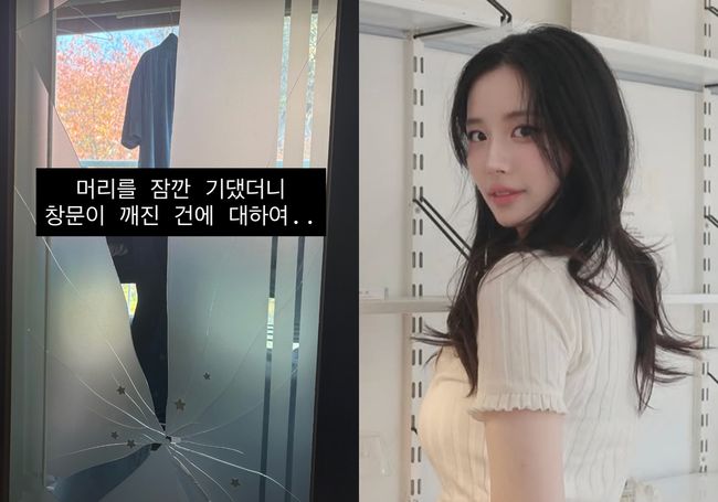 13일 최연수는 자신의 소셜 계정에 "머리를 잠깐 기댔더니 창문이 깨진 건에 대하여.."라며 한 장의 사진을 업로드 했다.