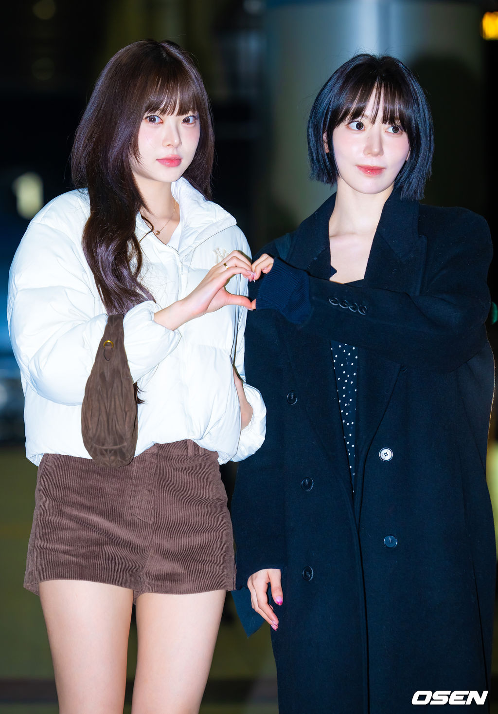 르세라핌 홍은채와 사쿠라가 출국장으로 이동하며 포즈를 취하고 있다. 2025.11.13 /rumi@osen.co.kr
