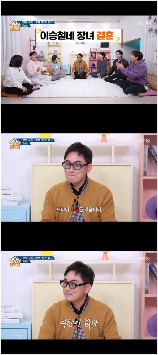 그러나 오히려 결혼을 부추겼다는 이승철. 이승철은 “사실 딸은 얼른 결혼 시키고 싶었다. 사위가 너무 괜찮은 친구였다. 연애한 지 1년밖에 안 됐는데 얘다, 싶었다. 사위는 정말 검소하다. 신발이 세 켤레뿐에, 새벽 5시에 늘 출근해서 자기 일을 준비하더라. 거기에 술, 담배도 안 한다”라고 말했다.
