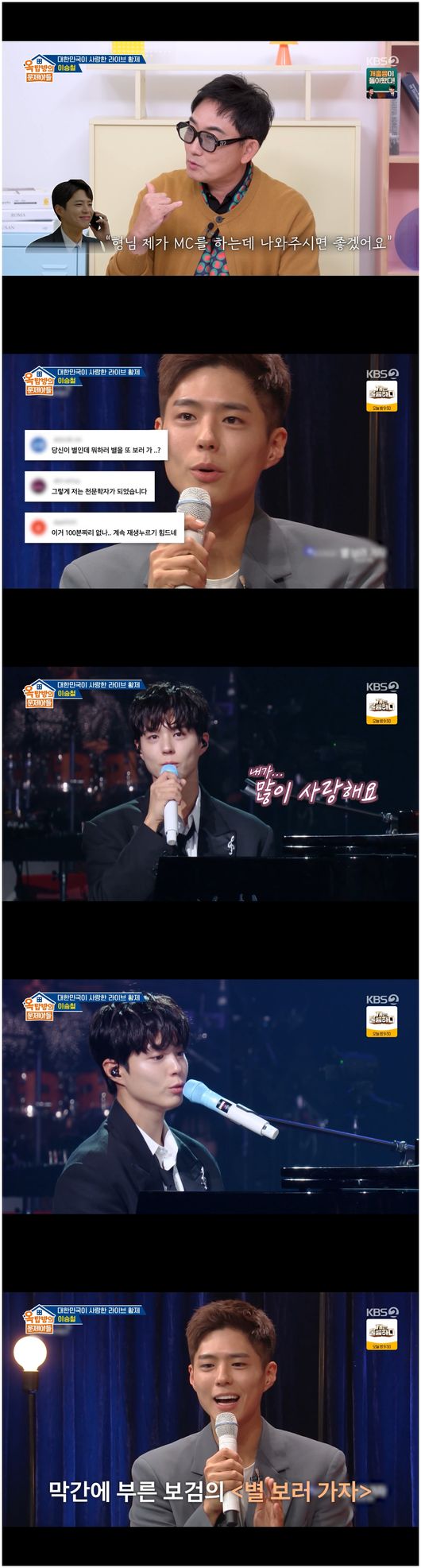 13일 방영한 KBS2TV 예능 ‘옥탑방의 문제아들’에서는 다양한 히트곡으로, 그리고 명불허전 보컬로 사랑 받는 가수 이승철이 등장했다. 명곡으로 유명한 이승철은 박보검과의 만남을 회상하며 "박보검이 피아노를 잘 친다고 해서 '유희열의 스케치북'에 박보검이 피아노를 치고 내가 노래를 부르는 걸로 나갔다. 그런데 박보검만 화제가 됐다"라며 투정 아닌 투정을 했다.