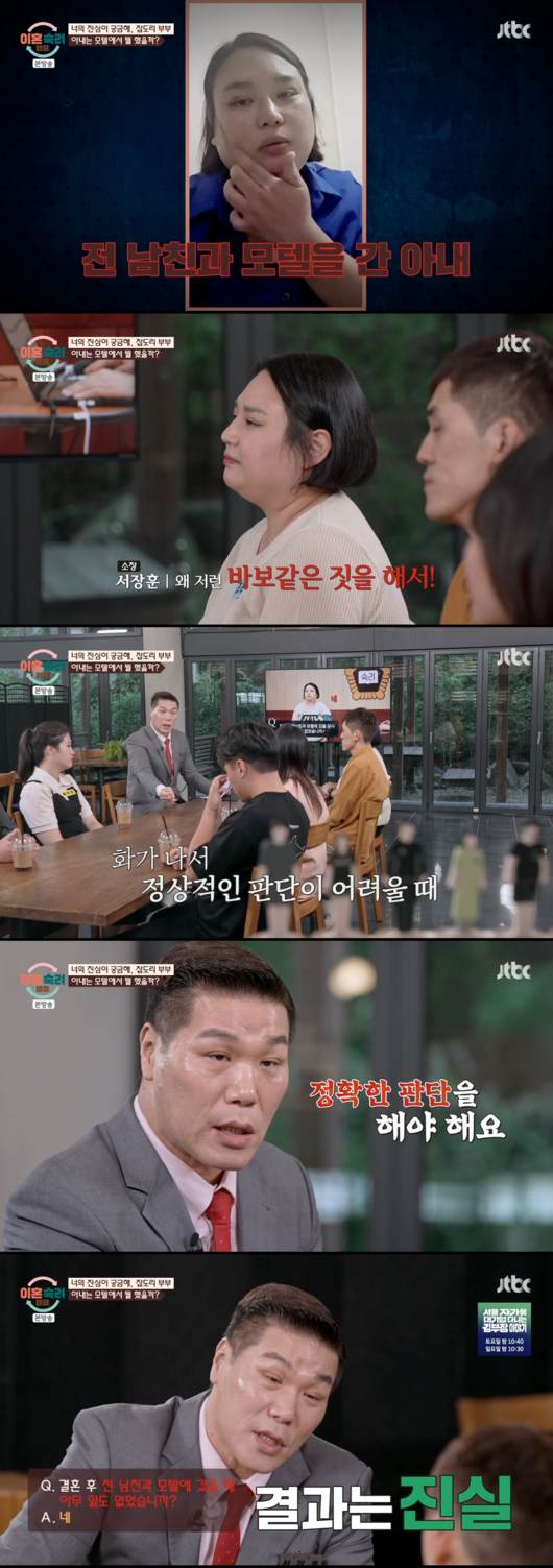 비록 아내가 모텔에 간 것 외에 '아무 일도 없었다'는 것은 진실이었지만, 서장훈은 아내의 행동을 맹비판했다. 서장훈은 "왜 저런 바보 같은 짓을 해서 이 따위 질문을 듣는 거냐"고 질책하며, "정확한 판단을 해야 한다. 기분에 따라 가버리면 배우자의 마음에 (평생) 남는단 말이에요"라고 일침을 가했다.