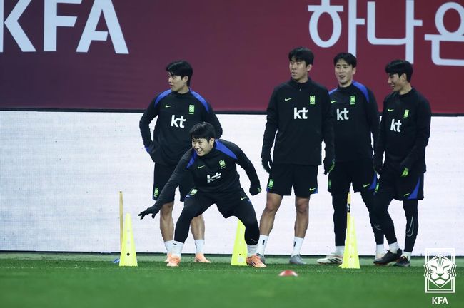 이날 훈련엔 이번 A매치에 소집된 선수 26명 전원이 문제 없이 참가했다. 소속팀 일정으로 늦게 합류한 유럽파 이강인(PSG)과 조규성, 이한범(이상 미트윌란)도 장거리 비행 후 회복을 마치고 정상적으로 팀 훈련에 함께했다.