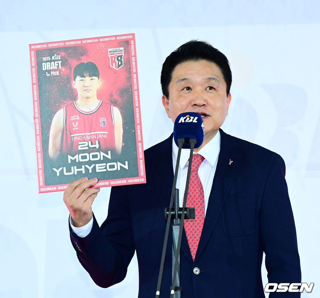 정관장 유도훈 감독이 고려대 문유현을 1라운드 1순위로 발표하고 있다. 2025.11.14 /jpnews@osen.co.kr