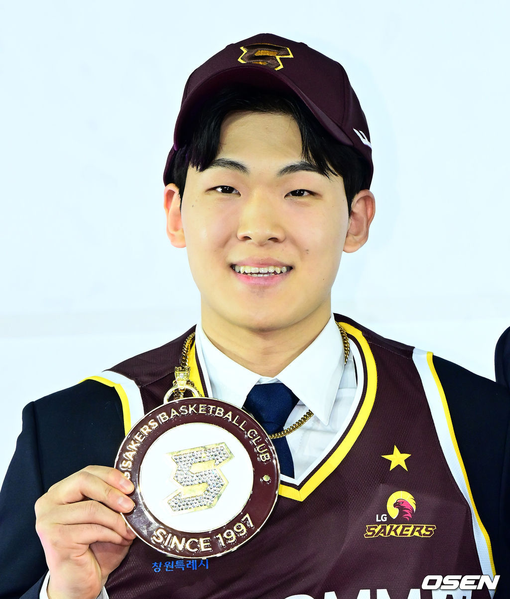 한양대 김선우가 1라운드 10순위로 LG에 지명되며 기념촬영을 하고 있다. 2025.11.14 /jpnews@osen.co.kr