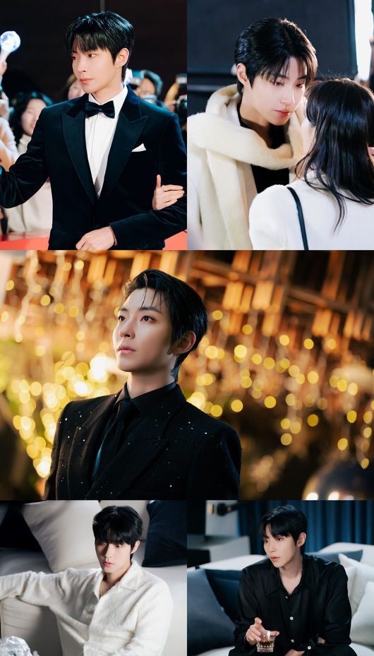 13일 공개된 5, 6회에서 황인엽은 아이돌 출신 톱배우 ‘허인강’ 역으로 분해 독보적인 비주얼과 강렬한 존재감을 드러냈다. 허인강이 백아진과 함께 한 레드카펫 현장에서 우월한 프로포션이 돋보이는 턱시도 차림으로 압도적인 매력을 발산하는가 하면 극 중 소속사 창립 기념회에서는 올 블랙 셋업을 완벽하게 소화하며 특유의 시크한 면모를 한층 배가시켰다.