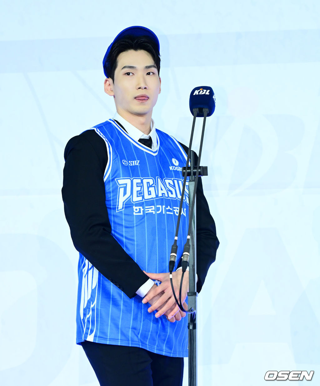 고려대 김민규가 2라운드 5순위로 한국가스공사에 지명되며 소감을 말하고 있다. 2025.11.14 /jpnews@osen.co.kr