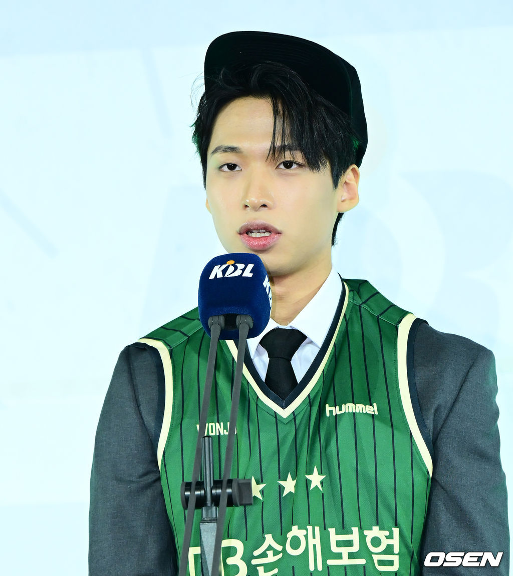 중앙대 김휴범이 2라운드 9순위로 DB에 지명되며 소감을 말하고 있다. 2025.11.14 /jpnews@osen.co.kr