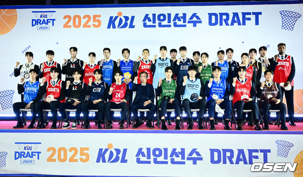 KBL 이수광 총재를 비롯한 드래프트에서 지명된 선수들이 기념촬영을 하고 있다. 2025.11.14 /jpnews@osen.co.kr