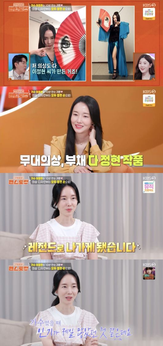 이날 ‘와’ 무대의상을 다시 디자인한 이정현은 “‘불후의 명곡’이라는 무대에 레전드로 나가게 됐다. 관객 앞에 서는 건 10년 만이다. 2015년 ‘무한도전’이 마지막이었다”라고 밝혔다.