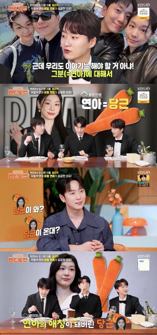 그렇게 생각해낸 김연아의 별명은 ‘당근’이었다고. 고우림은 “(멤버들이) ‘당근이 와?’, ‘당근이 온대?’, ‘당근이 불러’ 이런 식으로”라고 덧붙였다.