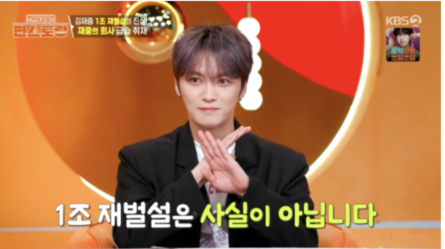 김재중은 “전에 주우재 씨와 대화하다가 ‘23년 동안 모으면 세전 기준 1,000억은 벌겠지’라고 농담한 적 있다”며 “그 말이 너튜브에서 와전되면서 1조 원이 됐다”고 해명했다. 그는 손사래를 치며 “절대 아니다”라고 강조했지만, 강남은 “내 눈엔 1조 근처는 있는 것 같다”고 장난을 거듭해 웃음을 자아냈다.