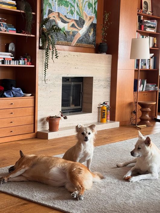 사진 속에는 이상순, 이효리 부부가 지내고 있는 평창동 집이 담겨있다. 거실에는 다섯 마리의 반려견이 소파에서 편안하게 휴식을 취하고 있는 모습. 벽난로 앞에도 반려견들이 앉아 있거나 누워서 휴식을 취하고 있다.