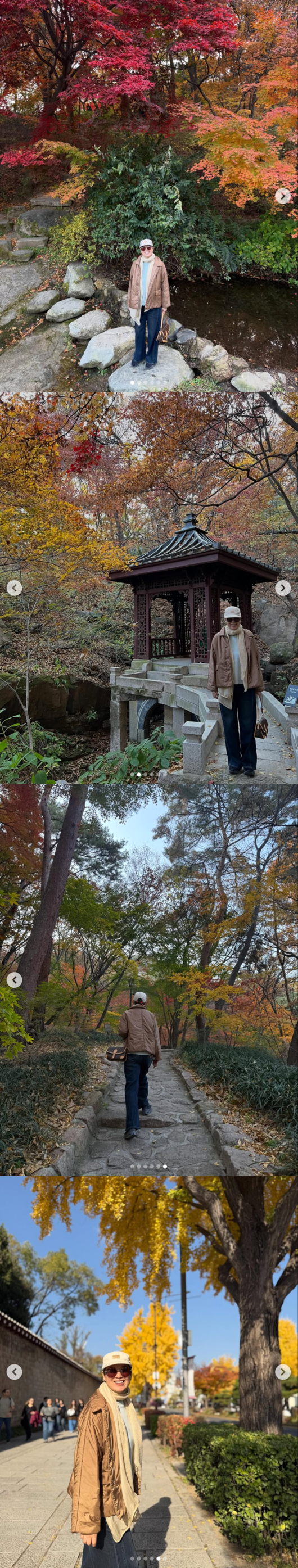 박미선은 “경복궁부터 부암동까지, 살면서 이런 여유를 다 누리네요”라며 “석파정이라는 곳에 첨 가봤는데 단풍이 너무 아름다워서 정말 꿈처럼 행복한 산책이었어요”라고 기분좋은 여유를 즐겼다.